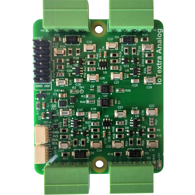 Achieve industrial precision and versatility in your embedded projects with the IoTextra Analog module. Built around the high-resolution 16-bit ADS1115 ADC from Texas Instruments, this module offers 4 truly differential input channels capable of reliably measuring a wide range of analog signals, including both voltage and current, and the essential 4-20mA industrial standard.